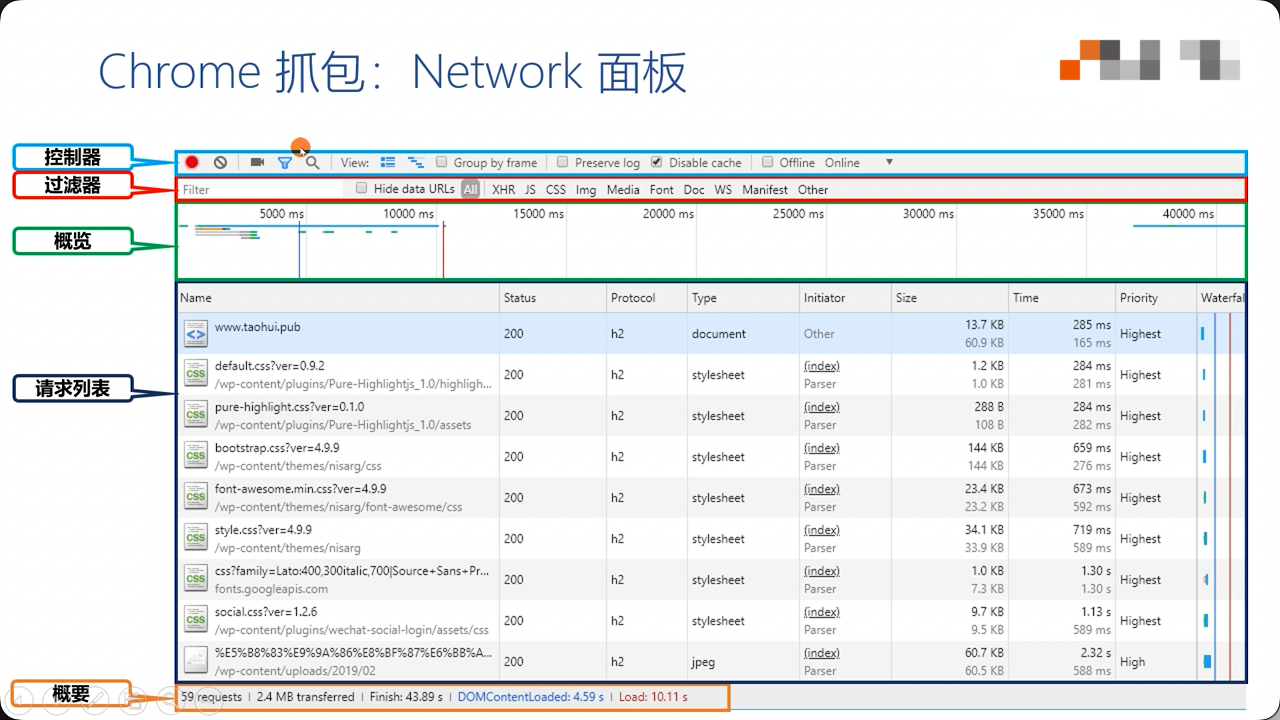 - DOMContentLoaded 事件的颜色设置为蓝色,而load 事件设置为红色